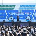 데일리연합 (SNSJTV) 김민제 기자 | 거제시는 지난 30일 거제종합운동장에서 관내 19개 중학교 1학년 3,074명이 참가한 가운데 ‘2025 거제시 진로체험박람회’를 개최했다. 올해 진로체험박람회는 자유학기제를 시행하는 중학교 1학년을 대상으로 진로 상담 및 미래 직업 체험을 통해 자신의 적성을 찾아보고, 스스로 진로 설계를 해 볼 수 있는 기회를 제공하기 위해 마련됐다. 이날 행사는 총 68개 부스에 60개 프로그램으로 구성해 다양한 체험부스를 제공하고, 학생 동아리 공연 등 부대행사를 진행해 참여한 학생들의 높은 호응을 얻었다. 특히 뮤지컬 배우, 드론 조종, 소방관, 군인 및 간호사 체험 등이 학생들의 흥미를 끌었으며, 거제대학교, 경남청소년상담복지센터, 경남산업고, 밀양영화고 등의 프로그램에도 많은 학생들이 참여했다. 그밖에 원어민과 함께 하는 영어마을 프로그램과 진로교육지원센터 꿈꿀거제 공모전도 인기를 끌었다. 변광용 거제시장은 “이번 기회에 자신이 좋아하고 관심 있는 직업을 체험해 보면서 미래의 꿈에 한걸음 더 다가가는 유익한 시간이 되면 좋겠다”고 말했다. &nbs