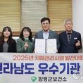 데일리연합 (SNSJTV) 이권희 기자 | 전남 함평군 보건소 치매안심센터가 2025년 전라남도 치매 관리 발전대회 우수기관 표창을 받으며 치매 예방·관리 분야에서의 우수한 행정 역량을 전국에 입증했다. 26일 함평군에 따르면, 군 치매안심센터는 올해 ▲치매조기검진 실적 향상 ▲전남대학교 간호대학 연계 인지‧신체 프로그램 운영 ▲공공후견사업 심판청구 완료 등 치매국가책임제 실현을 위한 핵심 사업을 적극 추진해 왔다. 함평군은 치매환자 송영 서비스, 찾아가는 조기 검진 서비스 등 교통·정보 접근성이 낮은 고령층을 위한 선제적 조기 검진 체계를 강화해 지난해보다 치매 검진 참여율을 크게 끌어올렸다. 또한 조기 발견된 대상자들은 보건소와 지역 병‧의원에 신속히 연계해 치료를 받을 수 있도록 도왔으며, 지속 상담·정기 검사·생활관리 등 사례관리 체계도 촘촘하게 연계해 정책 효과성을 높였다. 특히 함평군과 전남대학교 간호대학이 협력해 운영한 ‘인지‧신체 융합 프로그램’은 학문적 전문성에 기반한 전문 인지훈련과 실질적 신체활동을 통합한 치매 예방 모델로, 치매 위험 감소와 인지 기능 개선 효과를 입증한 관