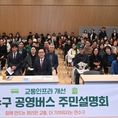 데일리연합 (SNSJTV) 김민제 기자 | 연수구가 지난 12일부터 14일까지 진행한 ‘공영버스 및 교통인프라 주민설명회’가 주민 300명이 참석한 가운데 성황리에 마무리했다고 18일 밝혔다. 이번 주민설명회는 연수구 공영버스 도입 설명을 비롯해 개인형 이동장치(PM) 단속 강화, 원도심 공영주차장 확충 등 교통 관련 주요 개선 사항에 대한 주민들의 의견을 수렴하기 위해 마련됐다. 주민설명회에 참석한 주민들은 송도동에 투입될 공영버스 노선 운영에 대한 다양한 의견을 제시했다. 주요 의견으로는 ▲공영버스 인천지하철 1호선 인천대입구역 경유, ▲송도 6공구 내 정류장 변경 등 공영버스 노선 관련 제안 사항이 주를 이뤘다. 구는 주민들의 의견을 충분히 검토한 뒤, 실현 가능성이 있는 의견부터 정책에 반영한다는 계획이다. 특히 인천대입구역 경유 방안과 송도 6공구 내 정류장 변경 요청에 대해서는 전문가 자문을 통해 배차간격과 효율성을 고려한 노선 설계를 검토할 예정이다. 이와 함께 구는 구체적인 노선별 정류장 위치 확정과 배차간격 조정, 환승 패턴 분석 등을 통해 주민들의 교통