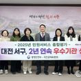 데일리연합 (SNSJTV) 김민제 기자 | 대전 서구는 행정안전부와 국민권익위원회가 공동 주관한 ‘2025년 민원서비스 종합평가’에서 우수 등급인 ‘나’등급을 획득해, 지난해에 이어 2년 연속 우수기관으로 선정됐다. 해당 평가는 전국 중앙행정기관, 시도 교육청, 광역·기초 지방자치단체 등 총 308개 기관을 대상으로 한다. 민원 행정과 제도개선 등 대민 접점 서비스 수준을 체계적으로 평가해 가~마 5개 등급을 부여한다. 서구는 시간과 장소의 제한 없이 종량제 봉투 구매와 폐건전지 교환이 가능한 인공지능 무인 판매기 ‘싹(SSAK) 마켓’과 ‘쌉(SSAB) 마켓’을 작년 신규 운영했다. 이는 오프라인 행정서비스에 인공지능 기술을 접목했다는 점에서 높은 평가를 받았다. 또한 △국민신문고 민원 처리 부문 △고충 민원 처리 노력도 등의 주요 지표에서도 지난해에 이어 우수한 성과를 거뒀다는 분석이다. 구 관계자는 “앞으로도 주민의 일상에 밀착한 민원 행정으로 신뢰받는 행정을 이어가겠다”고 말했다.