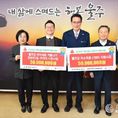 데일리연합 (SNSJTV) 김민제 기자 | 울산사회복지공동모금회가 20일 울주군 취약계층을 위한 혹한기 지원사업 후원금 총 1억원을 전달했다. 울주군은 이날 군청 소회의실에서 이순걸 울주군수를 비롯해 울산사회복지공동모금회 양호영 사무처장, 울주군지역사회보장협의체 원경연 위원장, 울주푸드뱅크마켓 손영순 센터장 등 관계자들이 참석한 가운데 후원금 전달식을 가졌다. 이번 후원금은 울주군지역사회보장협의체와 울주군푸드뱅크마켓에 각 5천만원씩 지원된다. 울주군지역사회보장협의체는 저소득 가구당 20만원씩 총 250세대에게 총 5천만원의 난방비를 지원하고, 울주푸드뱅크마켓은 취약계층 1천세대에 가구당 5만원의 생필품과 방한용품 등 꾸러미를 지원할 예정이다. 이순걸 울주군수는 “어려운 경제 상황에도 불구하고 울산사회복지공동모금회와 각 기관이 협조해 이웃을 돕는 나눔과 후원에 참여해 주셔서 진심으로 감사드린다”며 “소중한 후원금은 도움의 손길이 필요한 곳에 잘 전달하겠다”고 말했다.