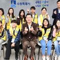 데일리연합 (SNSJTV) 김민제 기자 | “시장님이 수원에서 이루시고 싶은 최종 목표는 무엇인가요?” “제가 가장 우선으로 여기는 가치는 ‘도시는 도시의 주인인 시민이 만들어야 한다’는 것이에요. 그동안 시민이 참여할 수 있는 길을 넓히기 위해 노력했는데, 앞으로도 시민이 주인인 도시를 만들기 위해 더 노력할 거예요.” 1일 수원시청 이재준 수원시장 집무실. ‘청개구리 기자단’ 학생 기자가 이재준 시장에게 질문을 던지자 이재준 시장이 친절한 목소리로 대답했다. 이재준 시장이 청개구리 기자단에서 활동하는 학생 기자들과 인터뷰를 했다. 이날 인터뷰에는 청개구리 기자단 7명과 학부모 기자단 2명이 함께했다. 학생 기자들은 한 명씩 돌아가며 질문을 했고, 이재준 시장은 성심성의껏 답변을 했다. 청개구리 기자단은 이날 이재준 시장에게 ▲이재준 시장이 그리는 수원의 이상향 ▲수원에서 가장 자랑하고 싶은 것 ▲한국교육의 문제와 문제를 해결할 대안 등을 질문했다. 수원시 교육브랜드 청개구리 스펙(SPPEC)의 ‘P(Press)’인 청개구리 기자단은 수원 지역을 취재하고 알리는 활동을 한다. &nb
