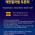 데일리연합 (SNSJTV) 장우혁 기자 | 제주특별자치도의회, 제주특별자치도 주민자치위원회협의회, 제주대학교 리걸클리닉센터, 제주미래디자인포럼, 사회적협동조합 제주로 공동 주최로 11월 25일 오전 10시, 제주특별자치도의회 1층 대회의실에서 '제주도민과 함께 쓰는 개헌절차법 토론회'를 개최한다. 국민주권 시대에 국민이 주도하는 헌법 개정 요구가 커지고 있고 이에 시민의회 방안, 국민청원 방안, 추진협의회 방안 등 국민참여방안을 담은 개헌절차법안이 3건이 국회에 발의됐지만 3건 법안의 국민참여방안은 제주도민의 의견을 충분히 반영하기에는 미흡하다는 지적이 있음에따라 이번 토론회는 제주도민의 목소리가 실질적으로 담길 수 있는 개헌절차법 제정 방안을 깊이 있게 모색하기 위해 마련됐다. 토론회는 이상봉 제주특별자치도의회 의장의 인사말로 시작하여 이남근 제주특별자치도의회 의원이 좌장을 맡고 신용인 제주대학교 로스쿨 교수가 '개헌절차법상 국민참여 방안 쟁점과 과제'를 주제로 발표할 예정이다. 또한 고정학 제주특별자치도주민자치위원회협의회장, 신훈민 변호사, 양광수 아라동 주민자치위원장, 조현주 국민주도상생개헌행동 상임공동