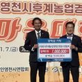 데일리연합 (SNSJTV) 김민제 기자 | 영천시는 7일 한국후계농업경영인 영천시연합회에서 100만원의 장학금을 영천시장학회에 기탁했다고 밝혔다. 한국후계농업경영인 영천시연합회는 약 1,200여 명의 회원을 보유한 영천시 최대 농업인 단체로, 농업인의 권익 향상과 농업·농촌 발전을 위해 활발한 활동을 이어가고 있다. 또한, 지역 인재 양성에도 꾸준한 관심을 기울이며, 현재까지 총 기탁금이 1,950만원에 달한다. 이날 영천강변공원에서 열린 ‘2025년 후계농업경영인 한마음대회’에서 장학금을 전달한 권대형 회장은 “회원들과 뜻을 모아 교육환경 개선과 우수 인재 양성을 위한 장학금을 꾸준히 기탁하고 있다”며, “많은 학생들이 장학 혜택을 받으며 지역을 대표하는 인재로 성장하길 바란다”고 소감을 전했다. 최기문 이사장은 “소중한 정성이 담긴 장학금으로 수혜 학생들이 체감할 수 있는 맞춤형 장학사업 발굴에 최선을 다하겠다”고 감사의 뜻을 전했다.