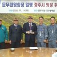 데일리연합 (SNSJTV) 김민제 기자 | 경주시는 지난 11일 문무대왕함장 임태웅 대령을 비롯한 장병 일행이 경주시청을 방문했다고 밝혔다. 경주시와 문무대왕함은 ‘문무대왕’이라는 이름의 인연으로 지난 2015년 자매결연을 체결한 이후 꾸준한 교류를 이어오고 있다. 2016년 문무대왕함장 이‧취임식 참석을 시작으로, 2020년에는 함정 장병들이 항해마일리지 적립금을 모아 코로나19 대응 성금으로 기부하는 등 우정의 관계를 지속해 왔다. 이번 방문은 문무대왕함이 올해 3월부터 9월까지 아덴만 파견 임무를 성공적으로 마치고 진해항에 복귀한 뒤, 오랜 인연을 이어가고자 경주시를 예방하면서 이루어졌다. 주낙영 경주시장은“신라시대 장보고처럼 해외에서 국민의 생명과 안전을 지키기 위해 헌신하는 함장님과 장병들의 노고에 깊이 감사드린다”며, “앞으로도 문무대왕함과의 우정과 교류를 적극 지원하겠다”고 전했다. 이에 임태웅 문무대왕함장은 “2025 APEC 정상회의의 성공적인 개최를 진심으로 축하드리며, 경주가 세계적인 관광도시로 도약하길 바란다”며, “문무대왕함도 그 여정에 함께 응원하겠다”고 화답