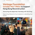 홍콩 2025년 11월 30일 /PRNewswire/ -- 밴티지 파운데이션(Vantage Foundation)이 홍콩 다푸(Tai Po) 왕푹 코트(Wang Fuk Court)에서 발생한 5등급 화재 이후 긴급 대응과 재해 복구를 돕기 위해 100만 홍콩달러를 기부했다. 이번 화재로 여러 가구가 심각한 피해를 봤으며 지역 주민들은 큰 혼란에 빠졌다. 기부금은 현지에서 인정받는 자선 단체에 전달돼 임시 거처, 필수 물품, 지역 사회의 중장기적 일상 회복 등 긴급 구호 활동에 사용된다. 밴티지 경영진 대표와 자선 팀원들은 기부금 전달에 그치지 않고 피해 지역을 직접 찾아가 구호 활동에 힘을 보탰다. 이들은 재해로 고통받는 주민들을 위로하면서 실질적 도움을 제공했다. 이러한 활동을 통해 밴티지는 오랫동안 이어진 기업의 사회적 책임에 대한 헌신을 이어가는 동시에 진정한 지원은 물적 자원을 넘어 따뜻한 관심과 연대에서 나온다는 신념을 더욱 강화했다. 밴티지 성명: "위기 상황에서 지역 사회를 돕는 건 우리의 책임이다. 왕푹 코트 화재로 깊은 상처를 입은 가족들이 이 기부를 통해 빠르게 회복하기를 바란다. 피해 주민들을 지원하기 위