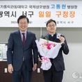 데일리연합 (SNSJTV) 김민제 기자 | 인천 서구가 지난 19일 가톨릭관동대학교 국제성모병원 고동현 의료원장 겸 병원장을 ‘일일 구청장’으로 위촉했다. 이번 일일 구청장 위촉은 지역 대표 의료기관과의 소통과 협력으로 주민 건강 증진과 지역 발전을 위해 마련됐다. 고동현 병원장은 이날 서구청사를 방문해 강범석 서구청장으로부터 일일 구청장 위촉장을 받고 간부 공무원과의 티타임을 시작으로 ‘일일 구청장’으로서 다양한 일정을 소화했다. 고동현 병원장은 첫 공식 일정으로 2026년 적십자 특별회비 전달식에 참여해 강범석 서구청장과 함께 적십자 특별회비 200만 원을 대한적십자사에 전달했다. 이어 청사 내 주요 행정 현장을 둘러보며 행정 운영을 직접 살폈다. 민원실을 방문해 여권 교부 업무를 직접 체험했으며, CCTV 통합관제센터와 악취·미세먼지 통합관제센터를 방문해 운영 현황을 청취하고 근무 중인 직원들을 격려하기도 했다. 마지막으로 고 병원장은 서구보건소를 방문해 보건소장으로부터 보건소 운영 현황을 듣고 보건소 주요 시설을 둘러봤다. 고동현 병원장은 “평소 쉽게