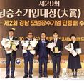데일리연합 (SNSJTV) 임재현 기자 | 경상남도는 22일 오후 호텔 인터내셔널 창원에서 ‘제29회 경남중소기업대상 시상식’ 및 ‘제2회 경남 모범장수기업 인증패 수여식’을 개최했다. 이번 행사는 경남지방중소벤처기업청(청장 손한국), BNK경남은행(행장 김태한), 경남신문(회장 이종붕)과 공동으로 열려 지역경제 발전에 기여한 중소기업과 장기 재직자의 노고를 격려했다. 경남도는 이날 시상식에서 “국내외 어려운 경영환경 속에서도 경남이 3년 연속 무역수지 흑자를 기록하고, 역대 최고치의 고용률을 달성한 것은 경남 경제의 주체인 중소기업 덕분”이라며, “기업이 잘 돼야 도민의 행복지수가 높아지는 만큼, 현장의 애로를 청취하고 지원을 이어가겠다”고 밝혔다. ‘경남중소기업대상’은 기술․경영 혁신으로 신제품 개발, 고용․수출 확대, 노사 동반 성장 등 지역경제 발전에 기여한 중소기업과 장기 재직자의 노고를 격려하기 위해 1996년부터 매년 수여해오고 있다. 지난해까지 총 202개 기업과 131명의 장기 재직자가 수상했으며, 올해는 6개 부문 9개 기업과 우수 장기 재직자 10명이 수상의 영예를 안았다. &
