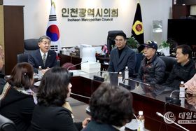 데일리연합 (SNSJTV) 장우혁 기자 | 인천광역시의회 정해권 의장(국·연수구1)은 조현영 의원과 함께 19일 인천시의회를 방문한 연수구 자율방범연합대을 접견하고 지역 치안 강화와 공동체 안전망 구축 방향에 대해 깊이 있는 의견을 나눴다. 이날 방문은 지역 사회 안전 활동을 펼치고 있는 자율방범대원들이 인천시의회와의 소통을 강화하고, 현장의 의견을 전달하기 위해 마련된 자리로, 정 의장은 연합대의 꾸준한 봉사와 책임감 있는 활동에 깊은 감사의 뜻을 전했다. 정해권 의장은 “밤낮없이 지역 곳곳을 지키며 시민들이 안심하고 생활할 수 있는 환경을 만드는 데 앞장서 주시는 자율방범대의 노고는 그 어떤 치안 인프라보다 값진 공공 자산”이라며 “대원들의 헌신이 연수구와 인천의 안전을 든든하게 떠받치고 있다”고 강조했다. 이어 “인천시의회는 시민의 안전을 최우선 가치로 두고 있으며, 자율방범 활동 여건 개선과 지원 강화가 필요하다면 의회 차원의 역할을 다하겠다”며 “지역 안전은 행정과 시민, 공동체가 함께 만들 때 더욱 단단해진다”고 말했다. 그는 또 “앞으로도 현장의 목소리를 세심하게 듣고 제도적 지원 방