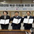 데일리연합 (SNSJTV) 김민제 기자 | 부산시는 27일 오후 2시 30분 부산항만공사 중회의실에서 부산지방해양수산청, 부산지방고용노동청, 부산항만공사, 부산항만산업총연합회와 '부산항 항만연관산업* 육성·지원을 위한 업무협약'을 체결했다고 밝혔다. 이날 협약식에는 성희엽 시 미래혁신부시장을 비롯해, 김혜정 부산지방해양수산청장, 김준휘 부산지방고용노동청장, 송상근 부산항만공사 사장, 김영득 부산항만산업총연합회 회장이 참석해 협약서에 직접 서명했다. 이번 업무협약은 부산항 경쟁력 강화와 지역경제 활성화의 기반이 되는 부산항 항만연관산업의 지속 가능한 성장을 도모하기 위해 마련됐다. 부산항만공사의 제안으로 시를 포함한 5개 기관이 뜻을 모으면서 협약 체결이 성사됐다. 항만연관산업은 부산을 중심으로 발달한 지역 특화산업으로, 전국 업체의 절반 이상이 부산에 등록돼 있다. 오늘 협약 체결에 따라, 협약기관은 앞으로 부산항 항만연관산업 육성·지원을 위해 협약서에 명시된 기관별 역할을 성실히 이행하고 상호 간 긴밀한 협력체계를 구축할 계획이다. ▲시는 부산항 항만연관산업 육성·지원을